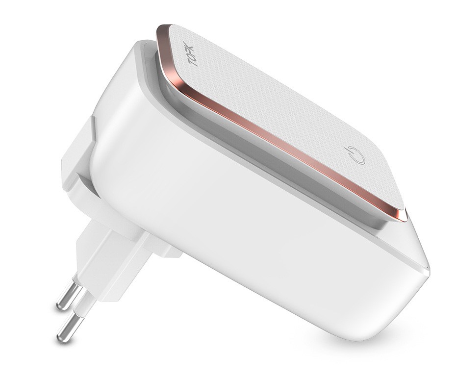 Carregador LED de parede com quatro portas para carregar vários dispositivos, o carregador é destinado ao carregamento de telemóveis e tablets de todas as marcas.