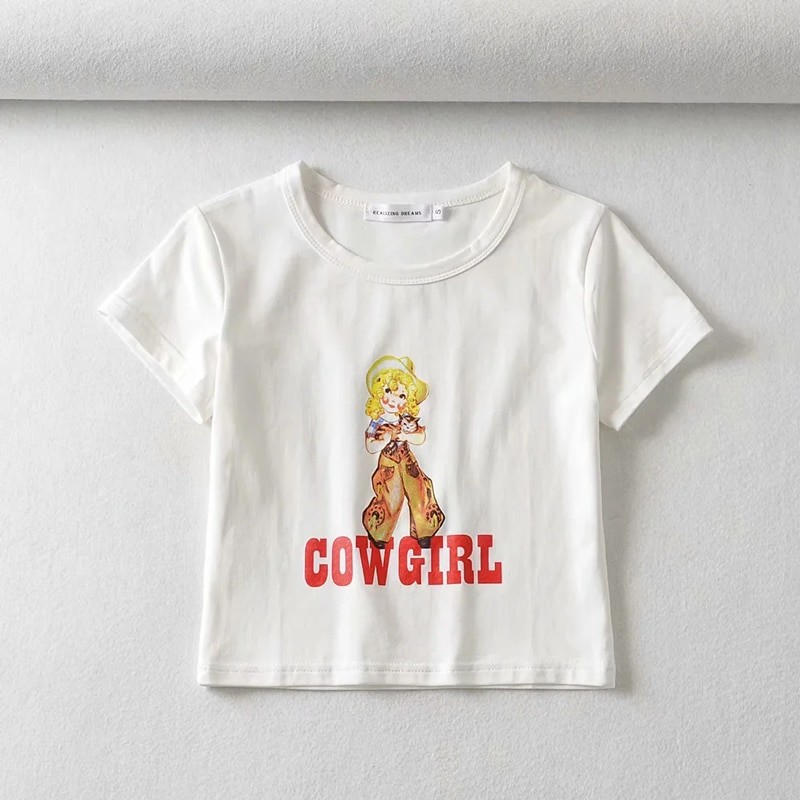 Top crop branco para senhora com estampado A1309