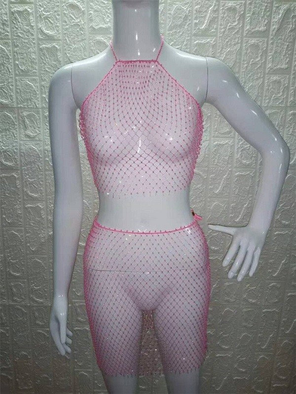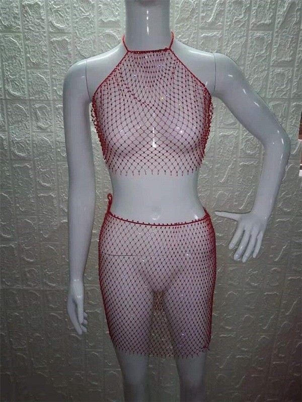 Top crop em rede e saia para senhora
