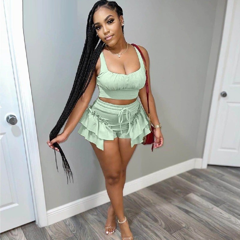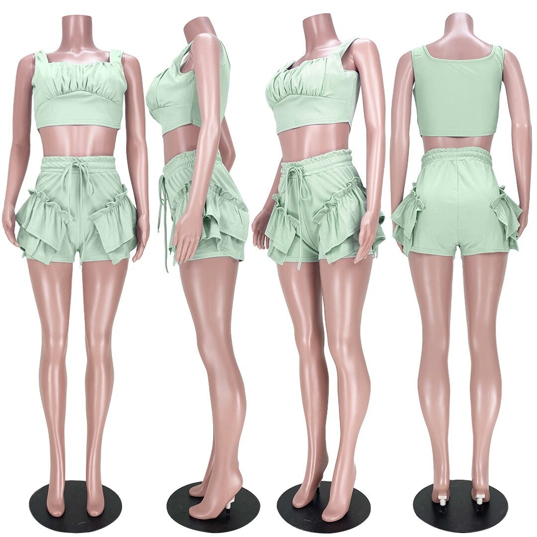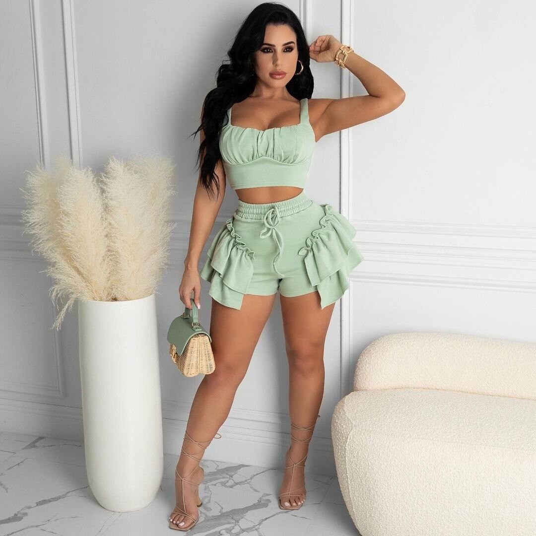 Top crop feminino e calções B1071