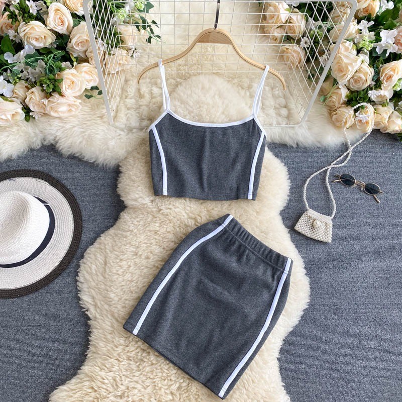 Top crop feminino e saia B1238
