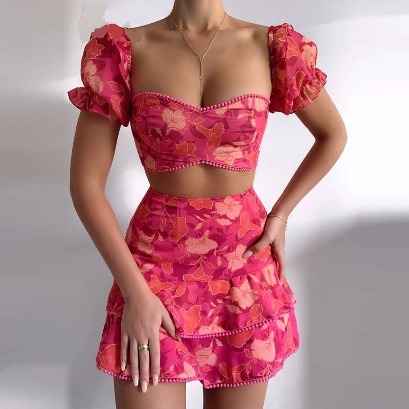 Top crop feminino e saia B902
