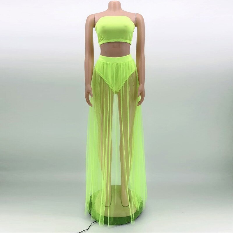 Top crop feminino e saia transparente