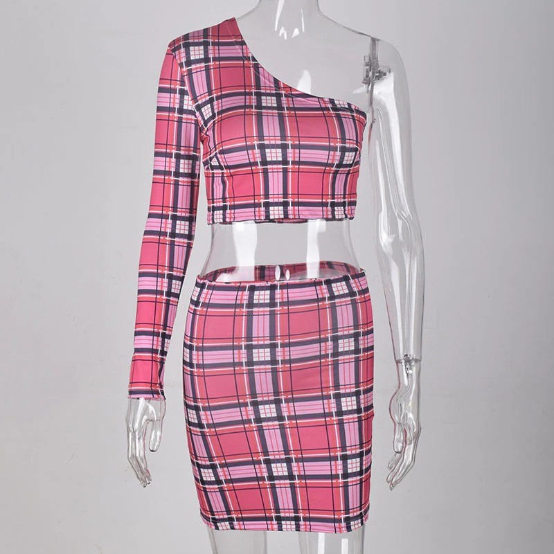 Top crop xadrez para senhora e saia