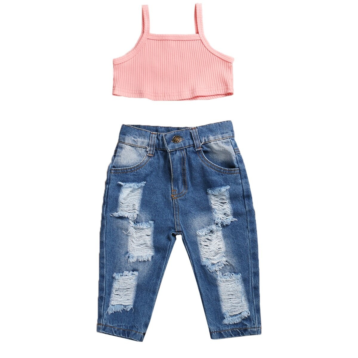 Top cropped e jeans para meninas