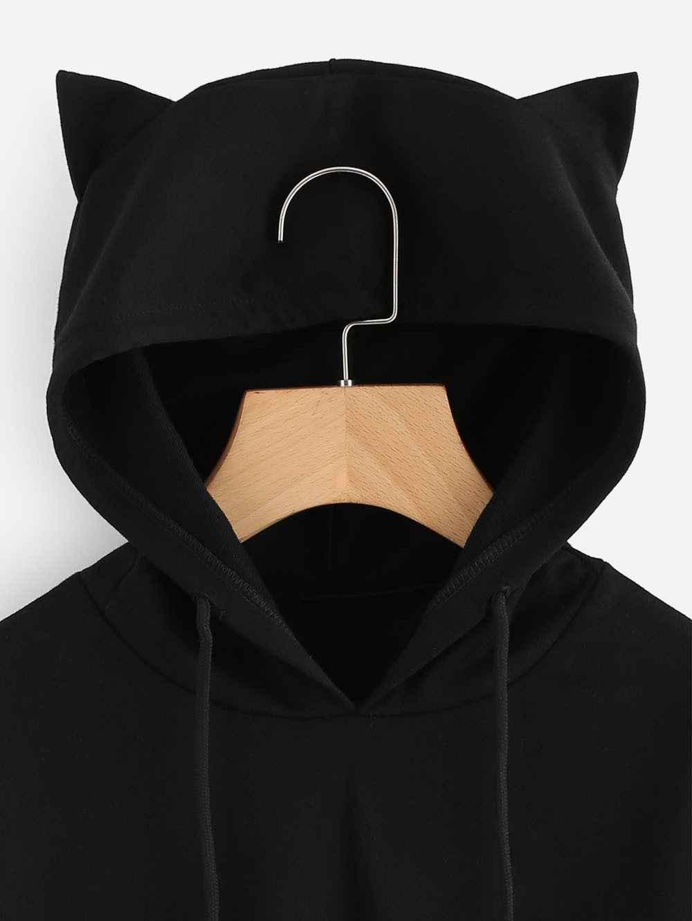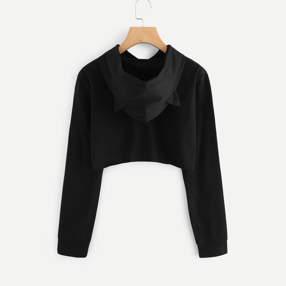 Seja como uma verdadeira gata com este top cropped com capuz, que tem orelhas de gato.