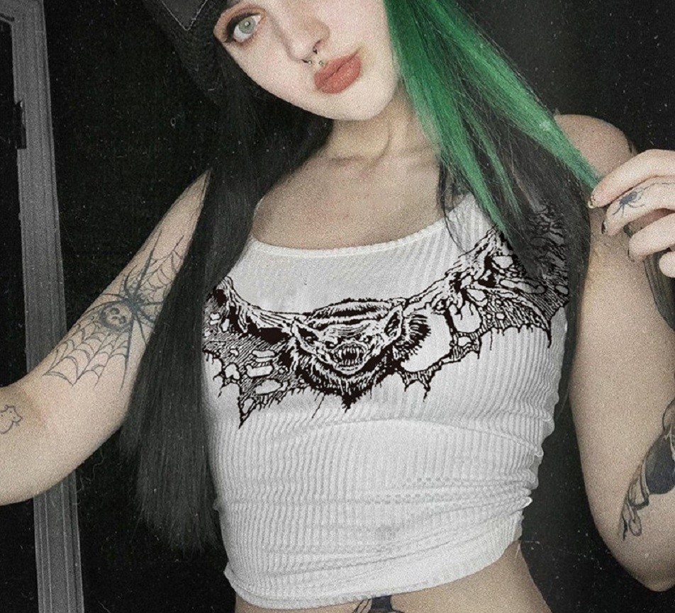 Top cropped feminino com estampado de morcego