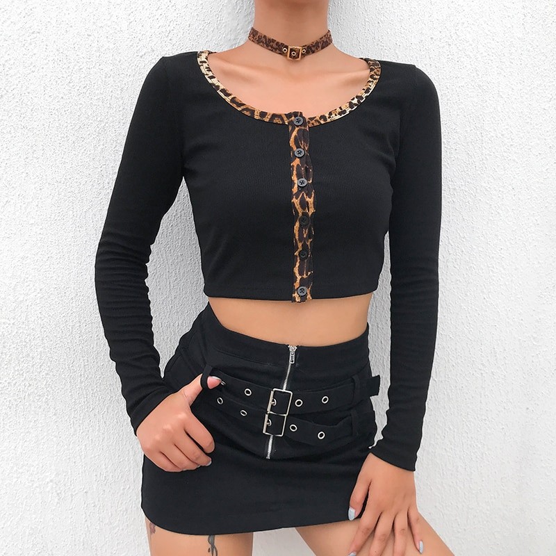Top cropped feminino com padrão de leopardo