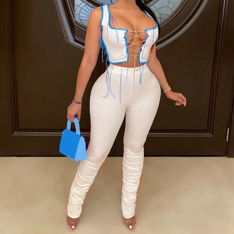 Top cropped feminino e calças B984