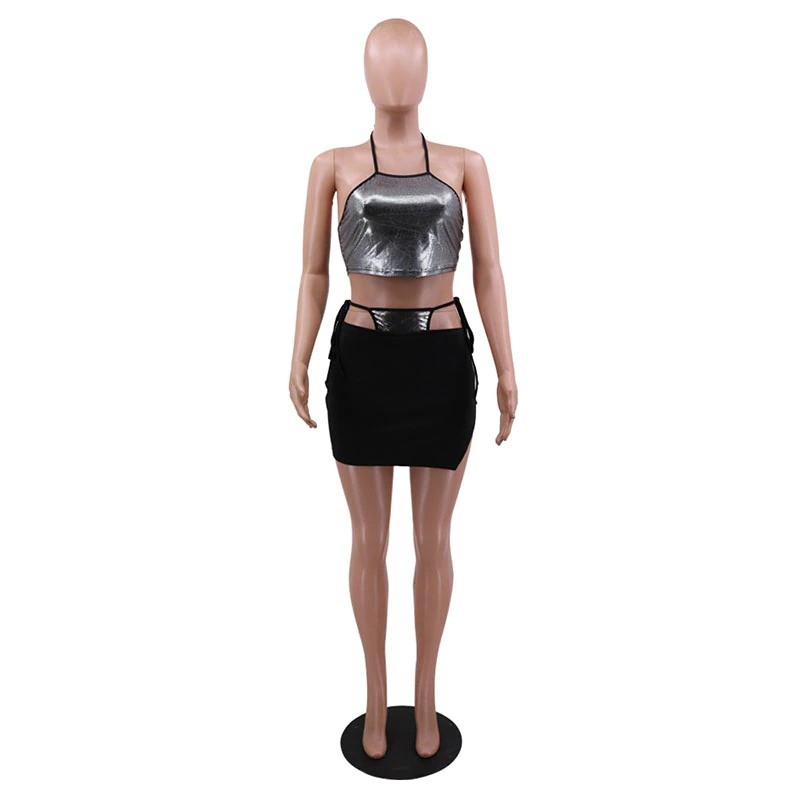 Top cropped feminino e saia B1186