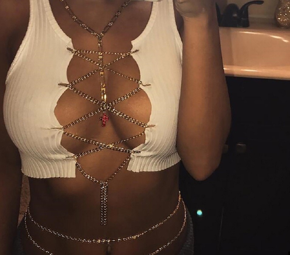 Top curto feminino com corrente