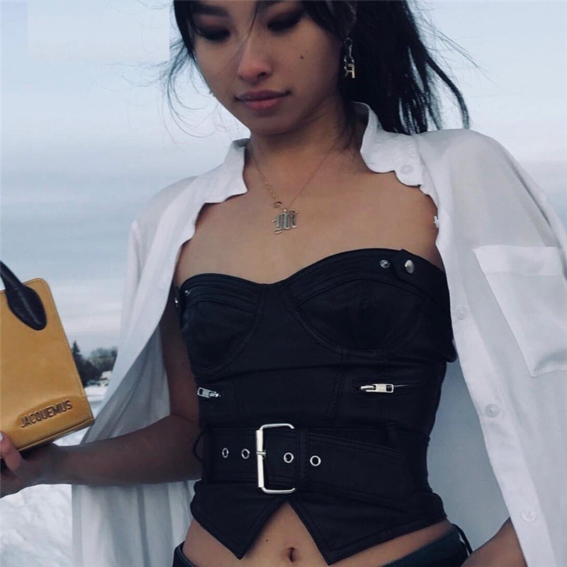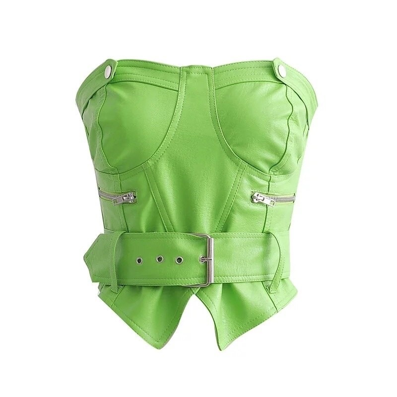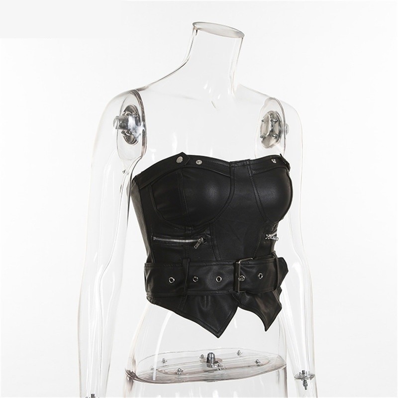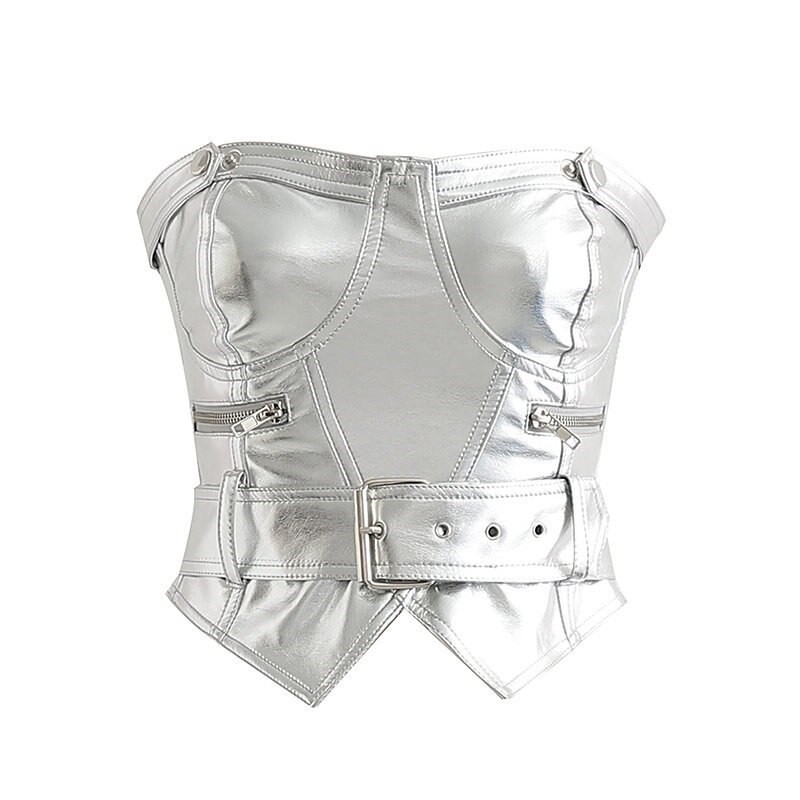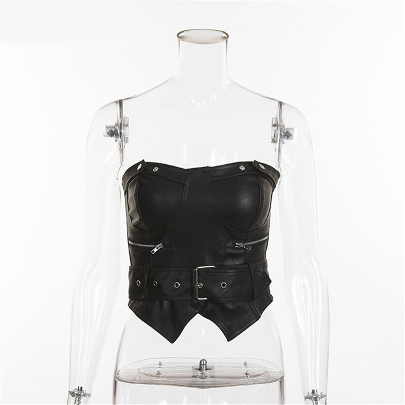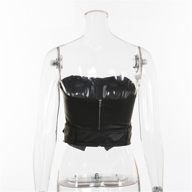 Top de couro sem alças para senhora