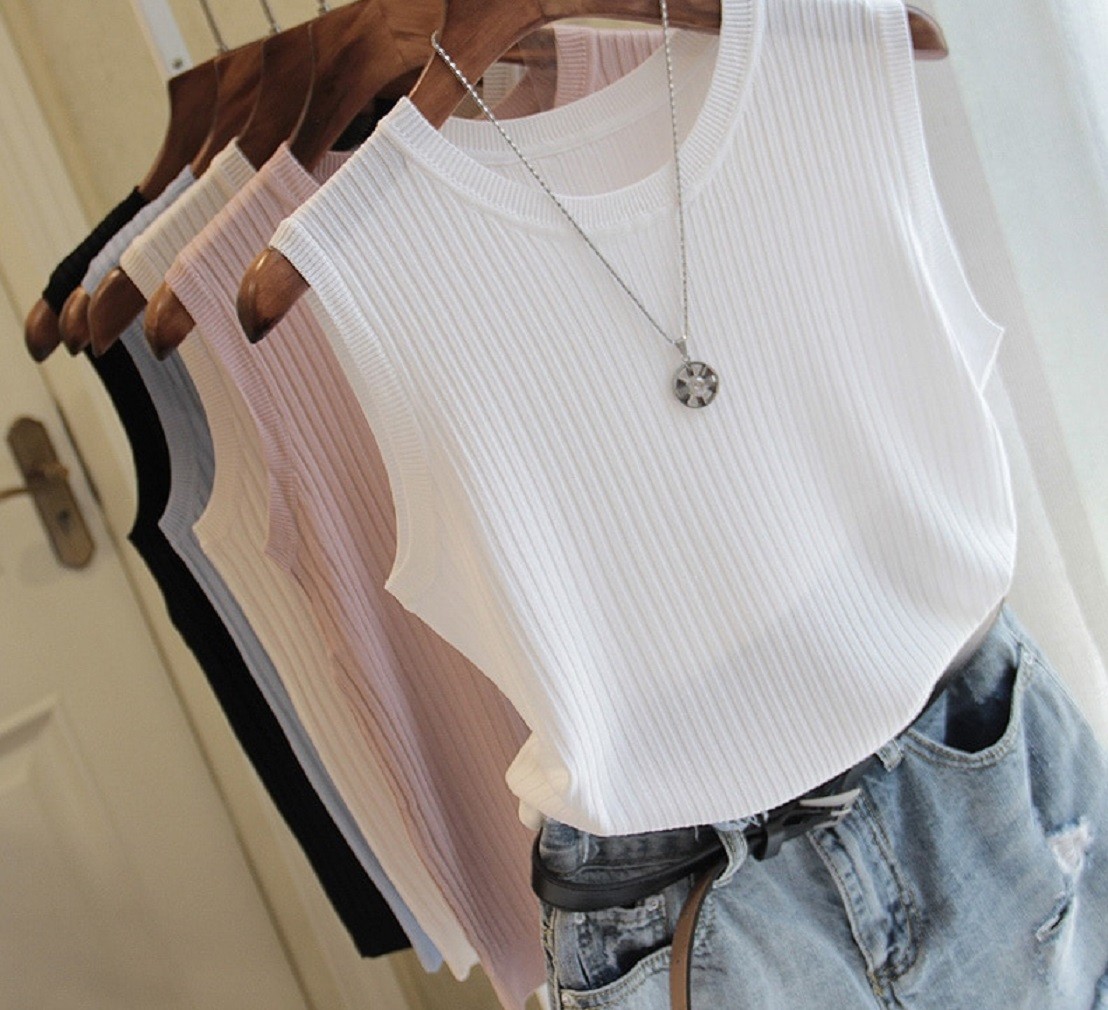 Top de malha sem mangas para senhora