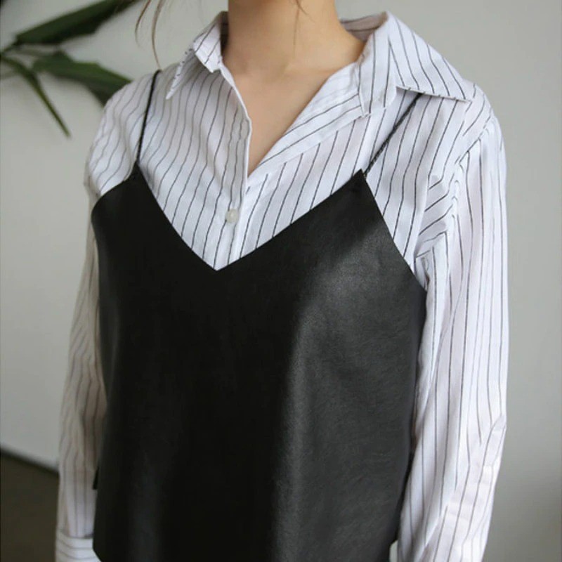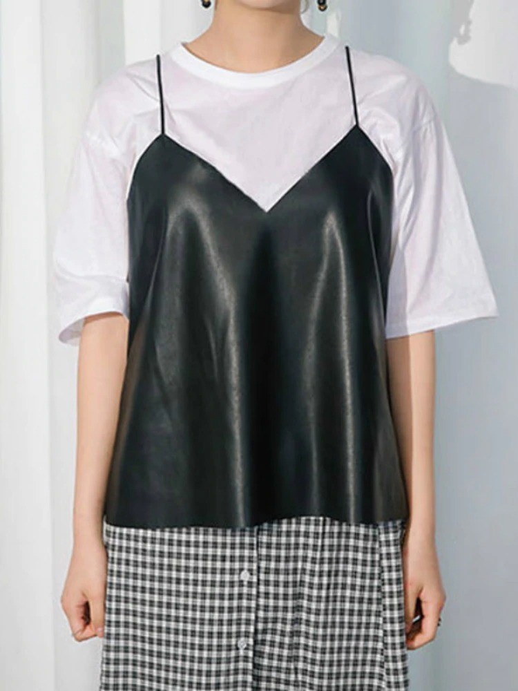 Top de pele sintética para mulher