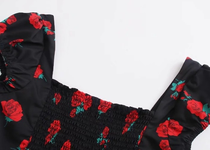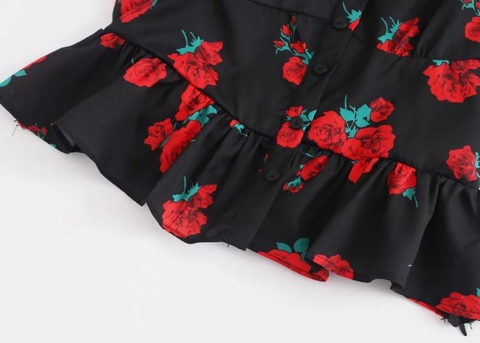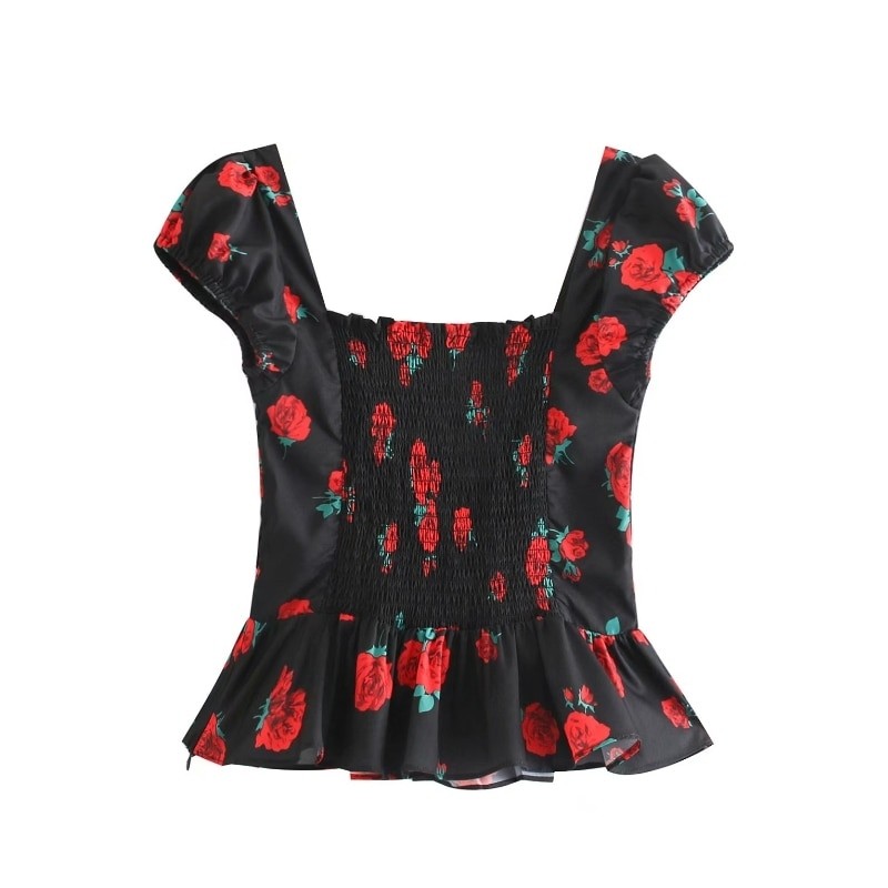 Krásný černý top s květinovým potiskem.