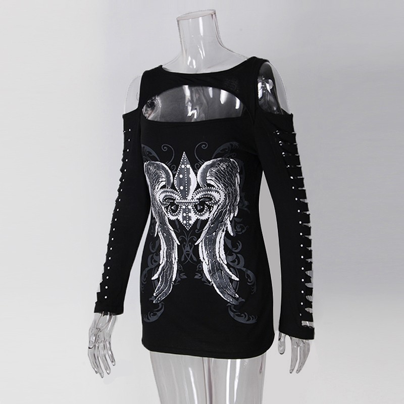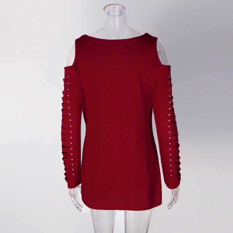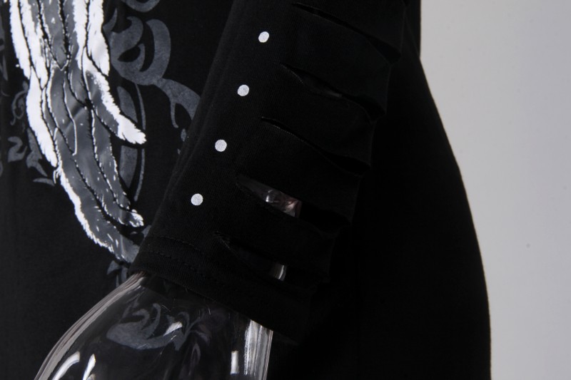 Este t-shirt de mangas longas é original não só devido aos cortes nos ombros, mas também pela sua bonita confecção nas mangas.
