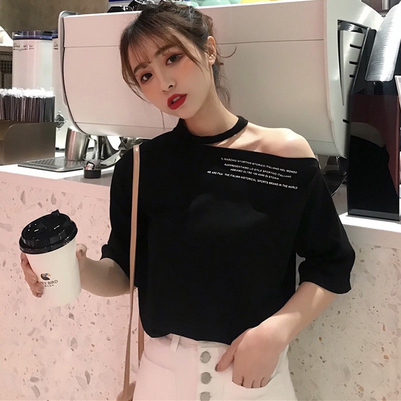 Top feminino com ombro caído