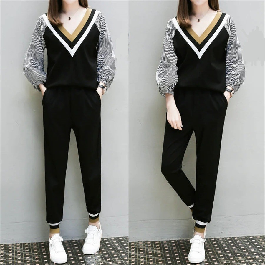 Top feminino de manga longa e calças B1153