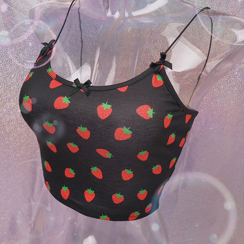 Top mini feminino com estampado de morangos