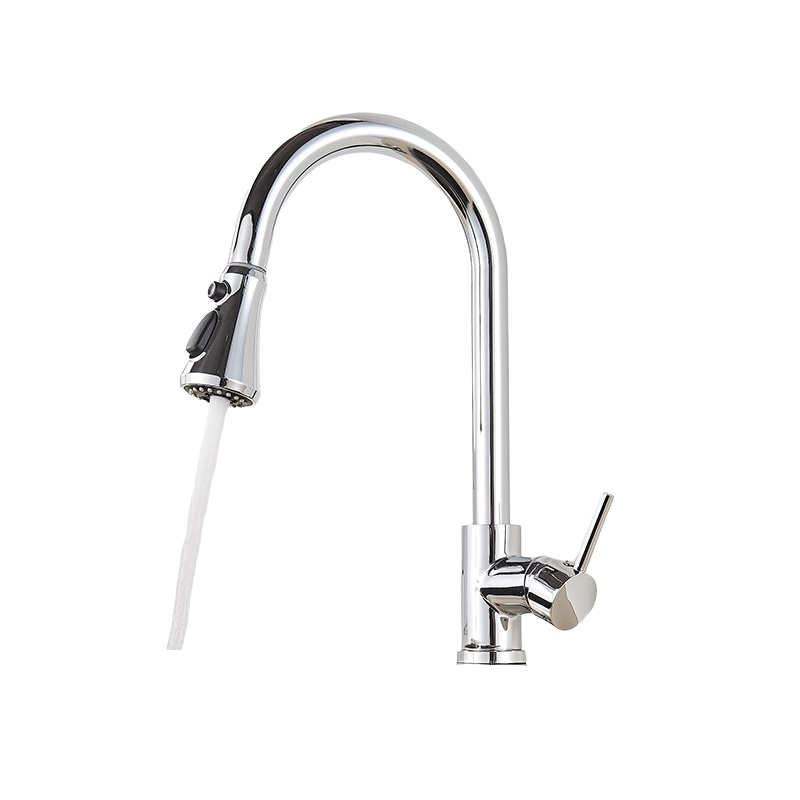 Esta prática e estilosa torneira de cozinha certamente facilitará o seu trabalho na cozinha ao lavar a louça. A torneira de cozinha possui um bico retrátil elegantemente escondido, que tem dois tipos de jato - saída clássica e chuveiro. Esta torneira é adequada para fixação na borda da pia.