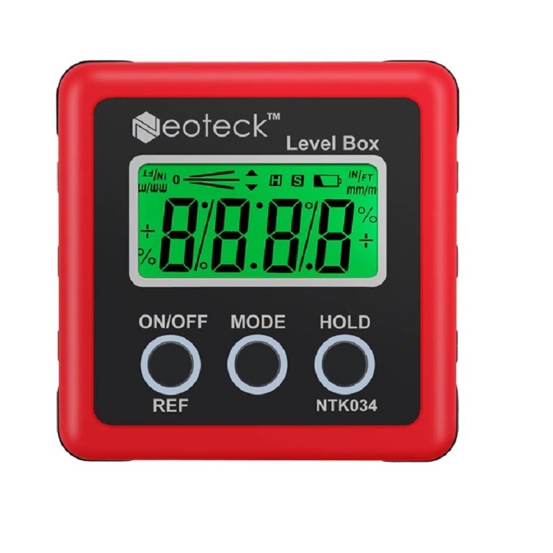 Funções e equipamentos: inclinómetro, transferidor, desligamento automático, íman