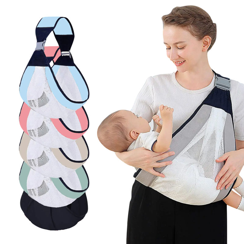 Transportador ergonómico para bebés e crianças pequenas de lado com alça ajustável. Material respirável, fácil de usar, ideal para o dia a dia. Descrição completa