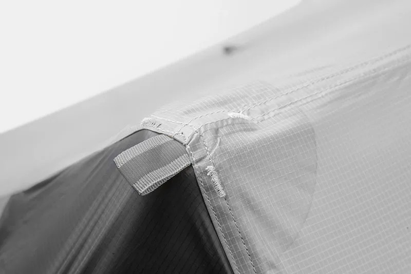 O tecido exterior é feito de nylon silicone 15D durável, que se destaca pelo seu baixo peso, alta resistência e excelente impermeabilidade. O tratamento em silicone evita a absorção de água, aumenta a durabilidade e resistência ao vento e a danos mecânicos. A principal diferença da versão de quatro estações reside no forro interno — este é feito de tela resistente ao vento 15D em vez de rede. Isso efetivamente impede a entrada de ar frio, mantém melhor o calor e proporciona maior conforto durante as noites de inverno. O fundo da tenda é composto por nylon impermeável 20D, que protege contra a umidade, neve e solo frio.