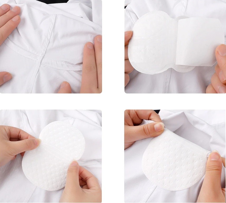 Válvulas descartáveis para as axilas, que basta apenas colar na parte interna da roupa. Protegem-no de forma fiável durante todo o dia. Protegem a roupa de danos. Capturam toda a sua transpiração e evitam manchas.