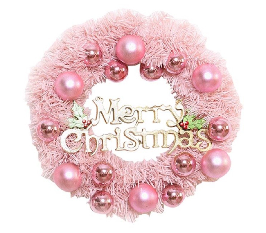 Original vánoční věnec de folhagem artificial na cor rosa não convencional.