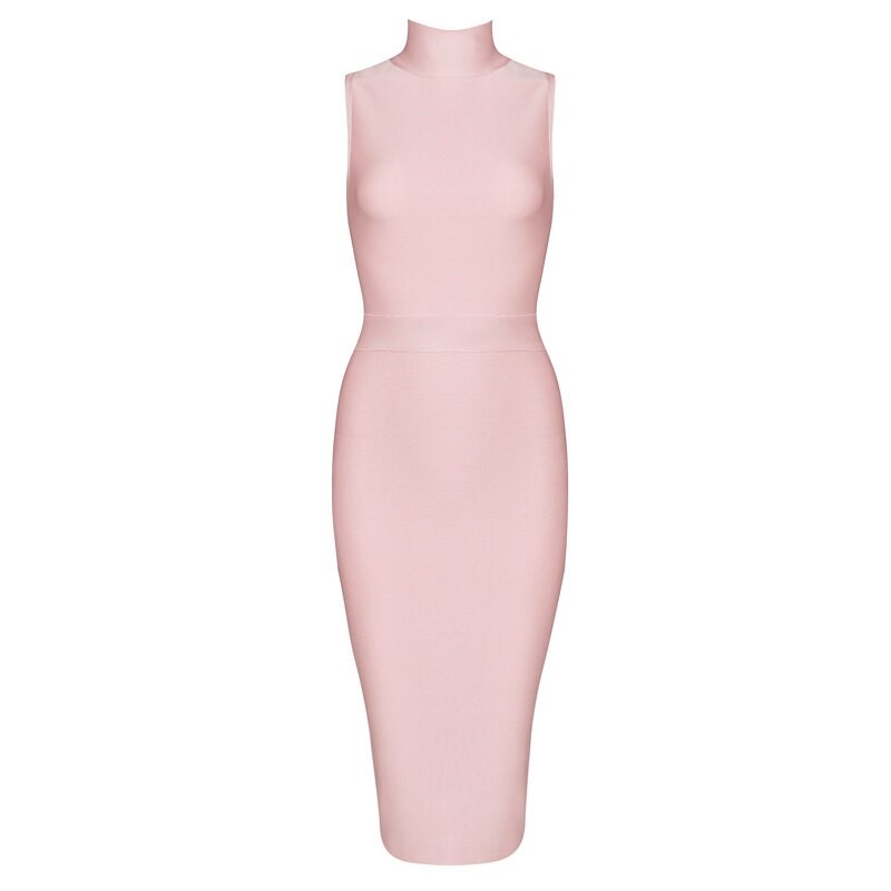 Sexy vestido bandagem ajustado sem alças que realça a silhueta.