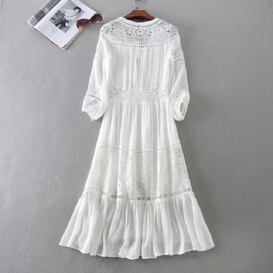 Krásné letní propínací šaty v boho stylu s jemným krajkovým zdobením.