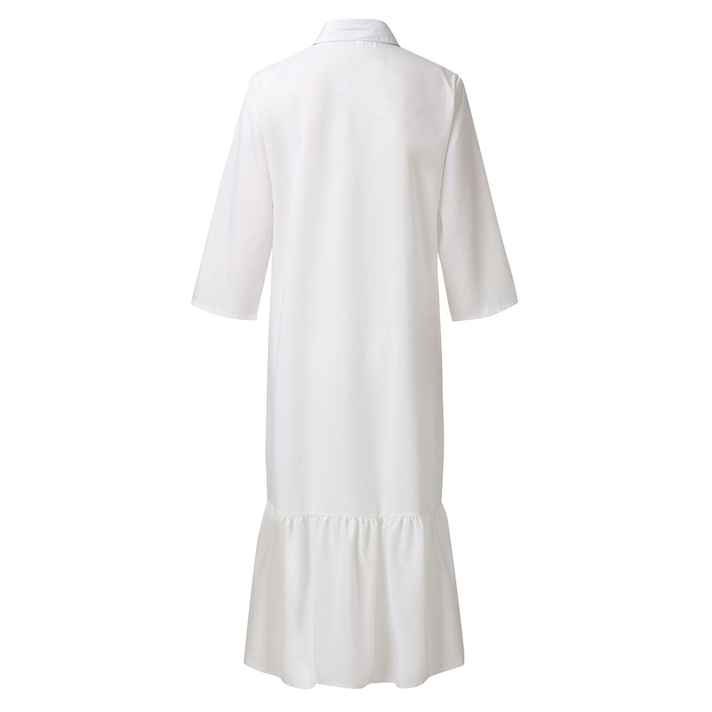 Estiloso vestido de camisa na cor branca com estampa de girafa.