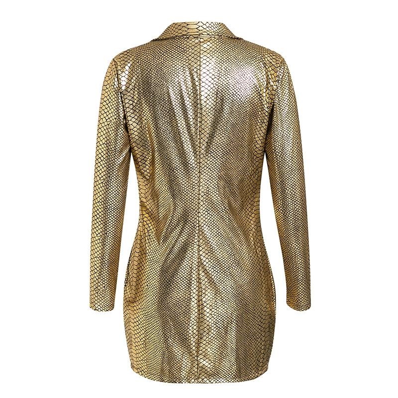 Luxuosos vestidos mini brilhantes para senhora na cor dourada.