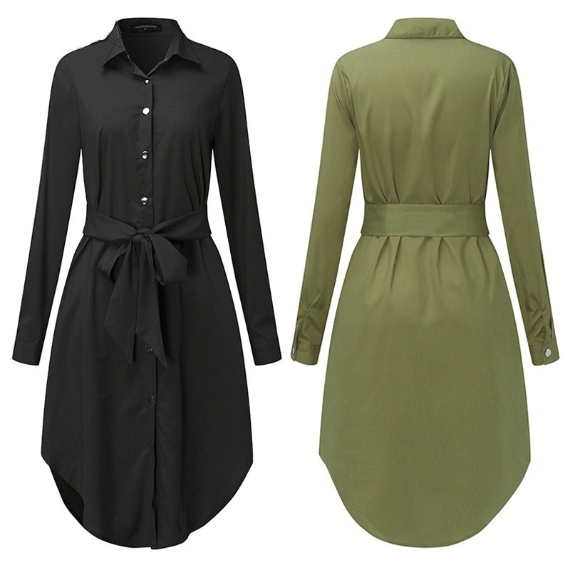 Vestido de camisa feminino com mangas longas.