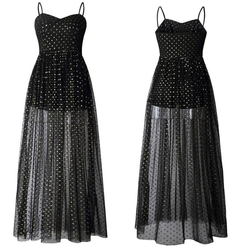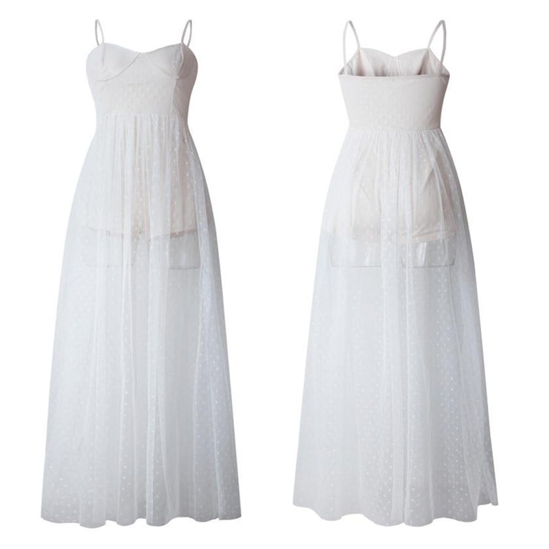 Vestido de corpete original com alças e saia longa e transparente.