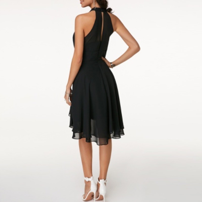 Elegante vestido de festa feminino com decote.