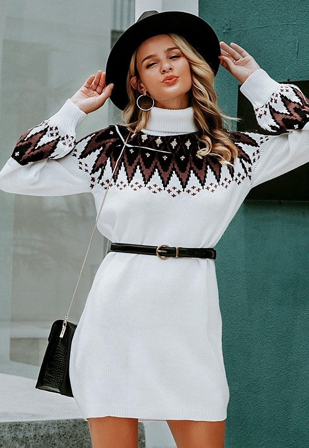 Lindos vestidos de malha de outono com gola alta e mangas longas.