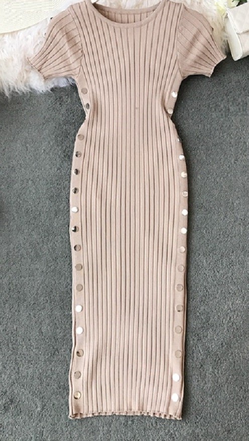 Vestido de malha com mangas curtas