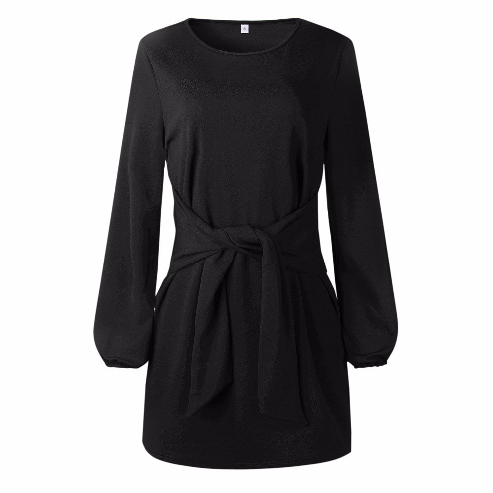 Vestido feminino original com um corte elegante. Com um laço original na cintura.
