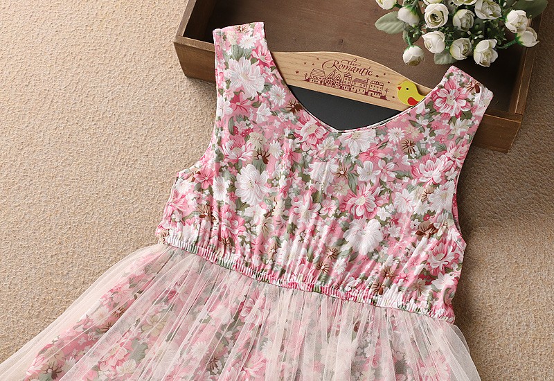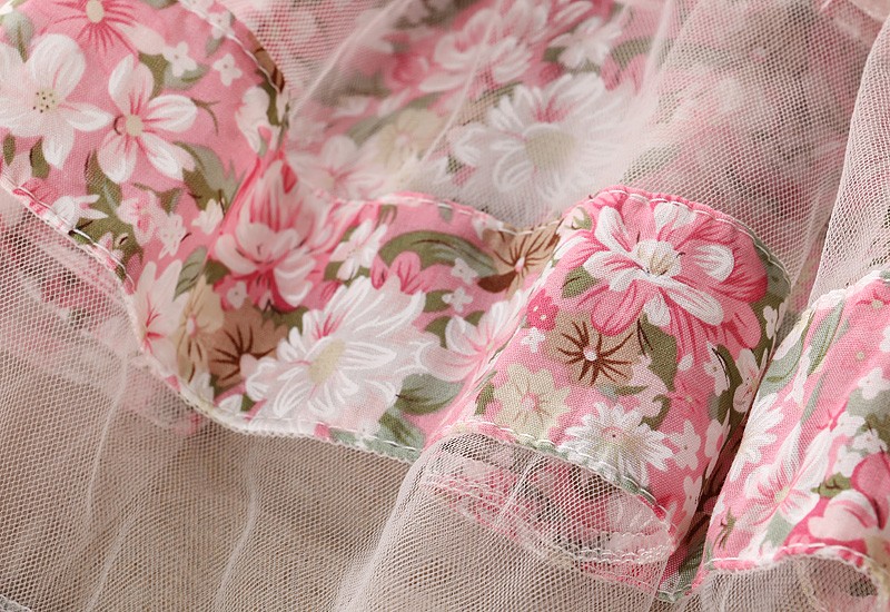 Krásné dívčí šatičky, které têm um padrão floral que alterna com um véu.