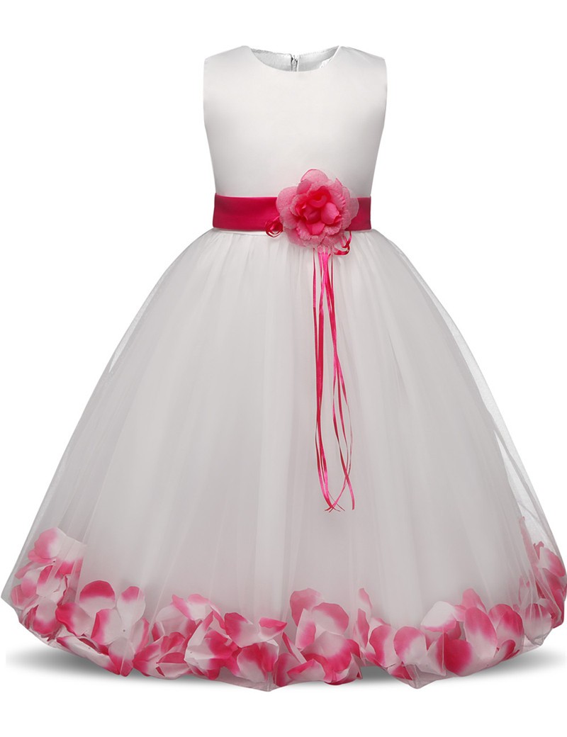 Nádherosos vestidos de menina com uma linda rosa à volta da cintura.
