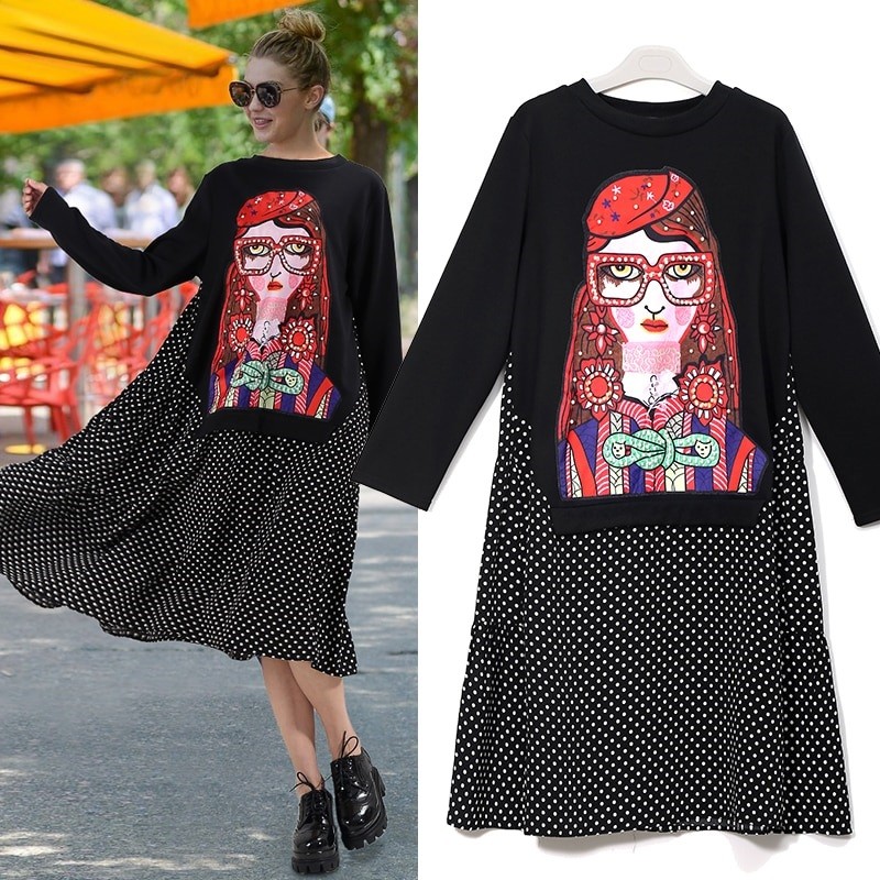 Vestido feminino em estilo túnica. Mangas longas e decote em O.