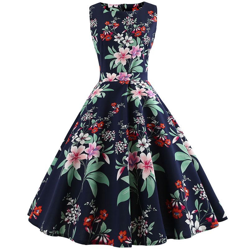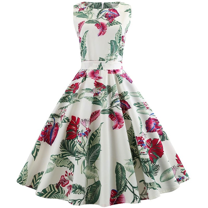 Vestido feminino sem mangas em um design popular. Estampagem estilosa.