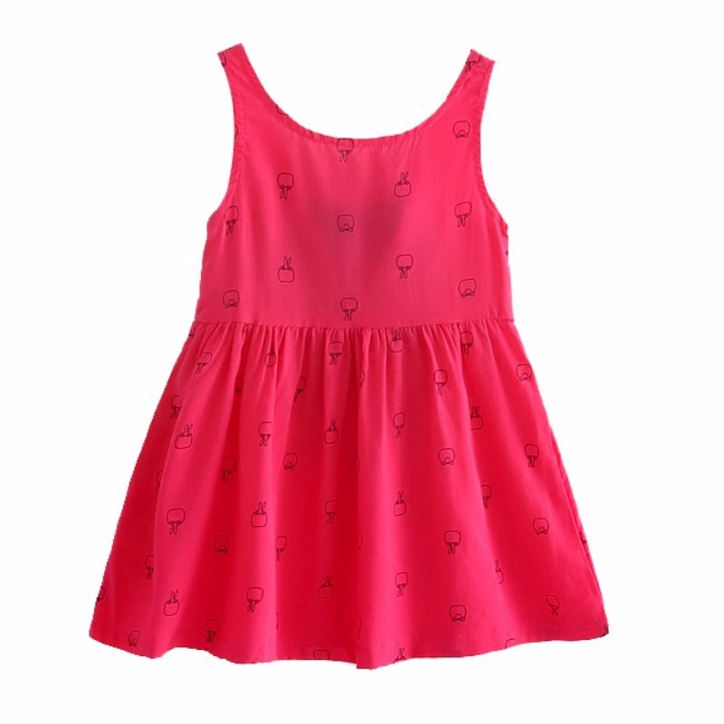Vestido de Verão para Meninas com Padrão - Rosa Escuro