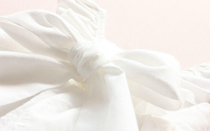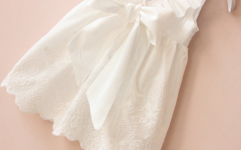 O vestido é sem mangas e ainda tem um lindo laço decorativo.
