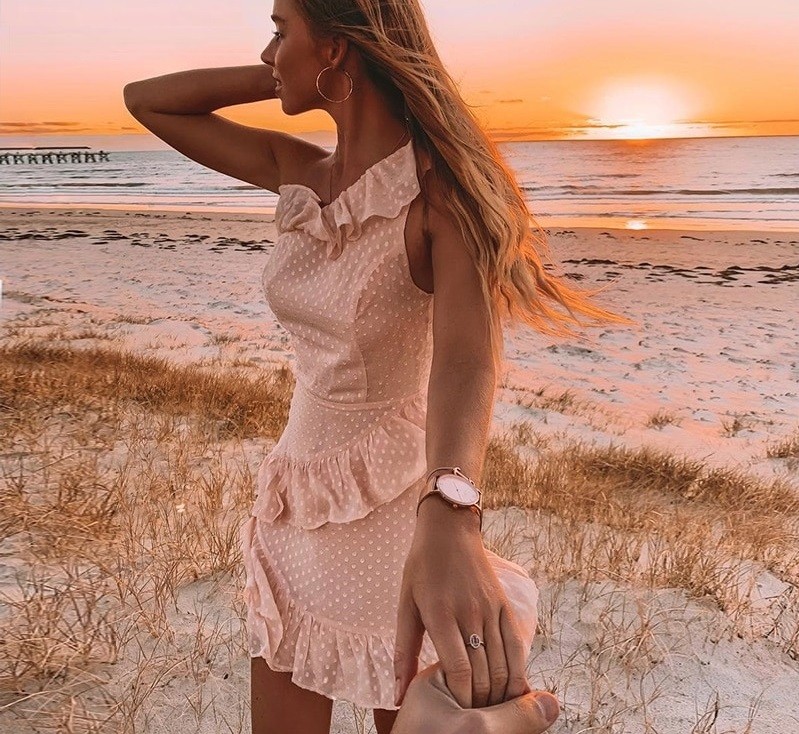 Vestido de verão rosa de um ombro