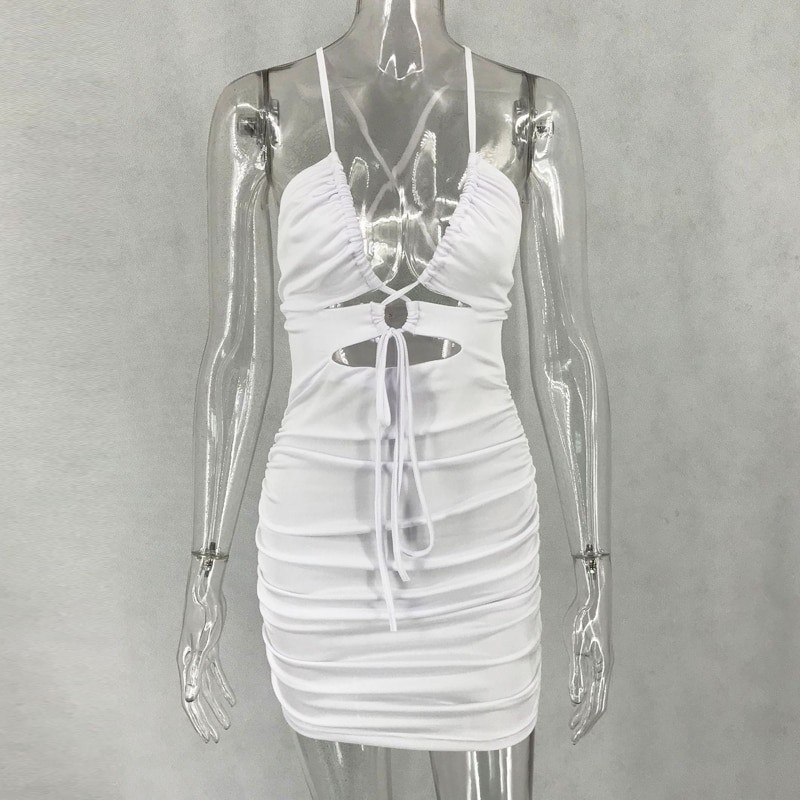 Svůdné dámské šaty s tenkými ramínky.