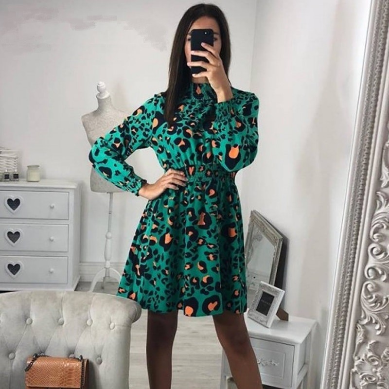 Vestido com mangas longas e estampado marcante.