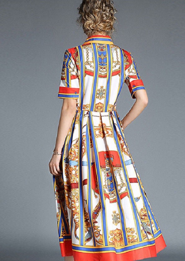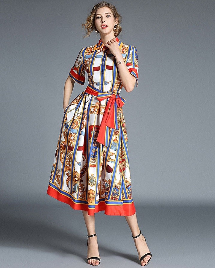 Vestido feminino muito elegante até ao joelho com um padrão marcante em estilo vintage.