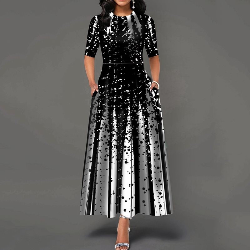 Vestido elegante preto e branco